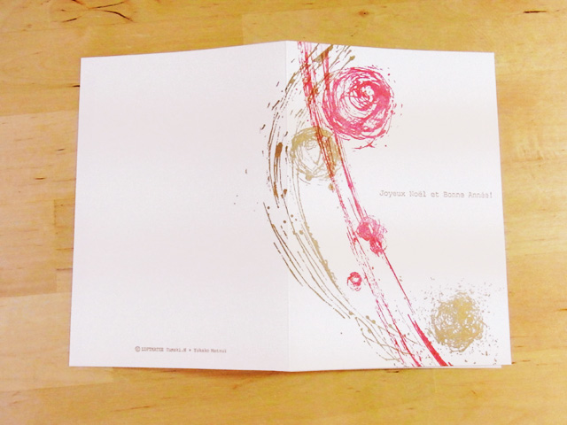 二つ折りカード(150mm x105mm 閉じた状態) + 洋2カマス封筒(162mm×114mm) ご注文は luftkatze@gmail.com まで 商品は12月初旬より発送いたします。 デザイン:Tamaki.H(LUFTKATZE) 書:Yukako Matsui