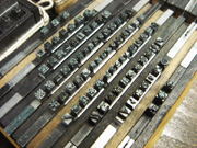 イワタ販売さんで野球ボールの活字を発見!それから色々集めて作成しました。はじめ同じ大きさの活字にしていたのを、途中でちょっと変えてみました。シンプルですが、倍数が変わる文字を並べるのは少々手間がかかります(ポイントのためトタンで調整できました)。ここに出てない約物もまだまだあります。