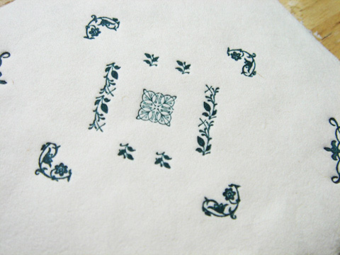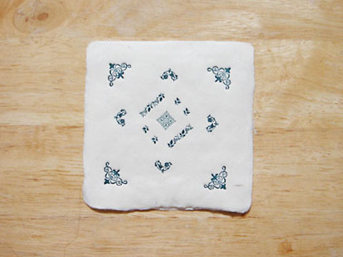 青銅/花 蝶とは中心が代わり、活字を4つ組み合わせて花にしています。色は青銅をイメージした少し錆びた青です。