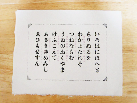 いろはの歌を初号、行間に訳を入れた2版刷り。上下は色を逆にしてしています。