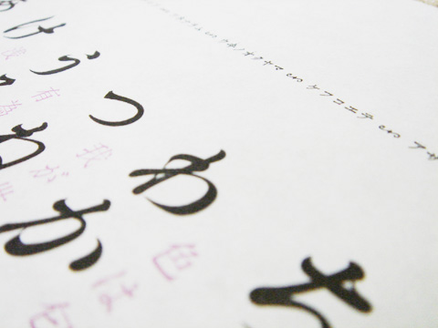 制作ばなし 2007年の青山ブックセンターで開催された「ABCでタイポグラフィ」への出展用作品です。なかなか大きな文字で出来る機会がないので、ちょうど直前に仮名を全て頂いたので、作ることができました。大きい分クワタも沢山使うので、販売用の増刷後は解版します。