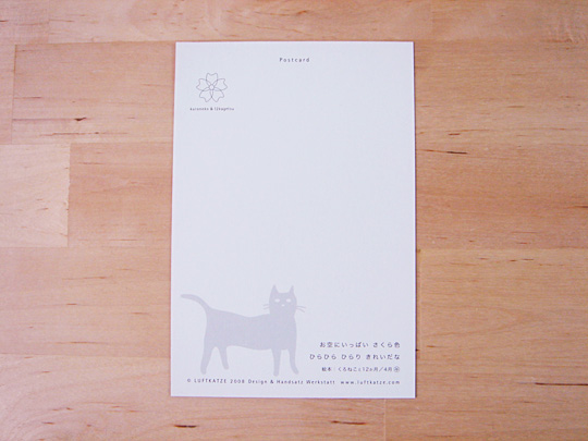 住所面は桜の切手マークと、表と同じ猫、詩が入っています。