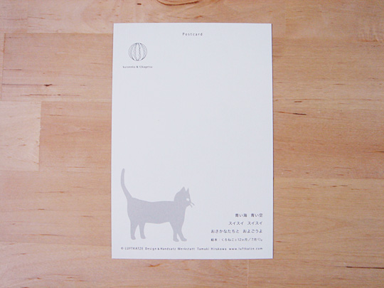 くろねこと12か月 ポストカード 4月/6月/7月 印刷方法:オフセット サイズ:148mm×100mm デザイン/イラストレーション:Tamaki.H(LUFTKATZE) 各1枚:¥ 150+税