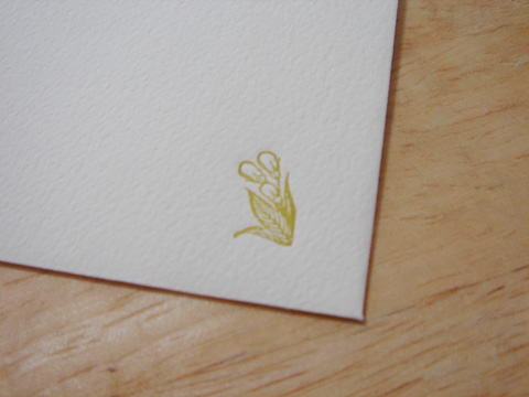 封筒付 ¥580(税込) サイズ:180×92mm 2つ折り 色:カード正面4色、4回刷り 紙:モデラトーン(竹尾) 使用書体:明朝体、Century Old It 8pt テントウムシ:2号、6pt 印刷機:桜井菊4 一版枚葉機(手差し)/手きん デザイン/組版/印刷:Tamaki.H(LUFTKATZE)
