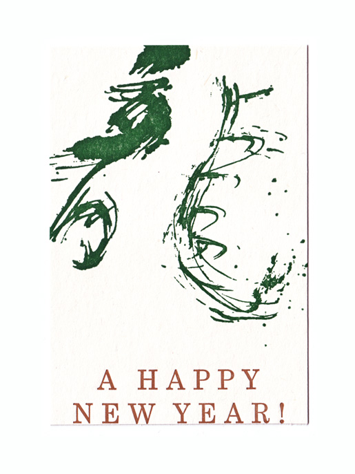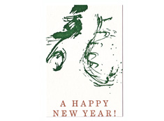 流れるような、天に向かう龍のような、動きのある書を深い緑で印刷。A HAPPY NEW YEAR!の活字はゴールドで印刷しています。 紙はあえてザラっとしたバフン紙を使用。 紙色:白 その他の写真はコチラ→