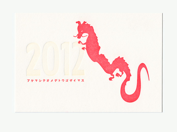 年賀状 2012/書のグリーティング Nenga / Greeting 2012年のLUFTKATZE年賀状は、書家・松井ゆかこさんとのコラボレーションを含めた3作。 書と活字、活版で印刷、コラージュなどの組み合わせは、新しい試みです。 来年の干支「龍」を中心とした活版の年賀状と、 年末年始に使えるグリーティングカードをご用意いたしました。