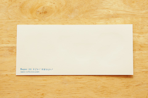 裏面 Superの意味とLUFTKATZEのアドレスが書かれています。クリームはホワイトよりやや紙が柔らかいため、ポストカード外にも使えるようにしています。