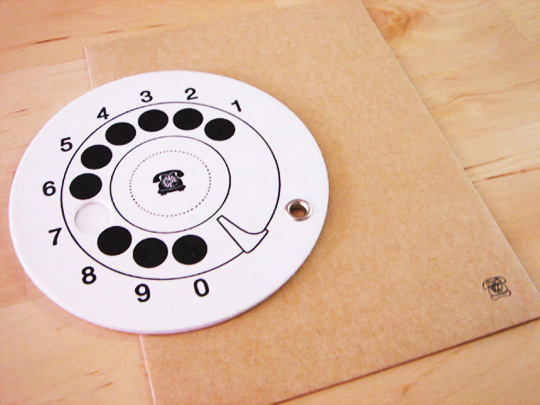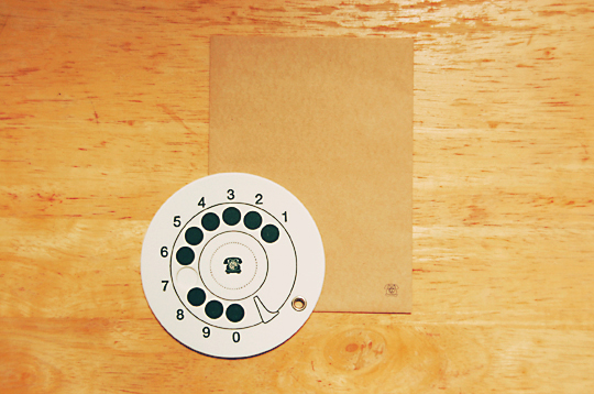 黒電話ダイヤルカード ジーゴロゴロと廻すダイヤル。昔なつかしい黒電話だけど、今や小さな子供達は知らないカタチ。7番をくるりと廻して、中にメッセージを書いてください。開いている「○」から、下に書いたものを何か覗かせてみるのも良いかもしれません。クラフト紙の封筒にも電話マークが入っています。